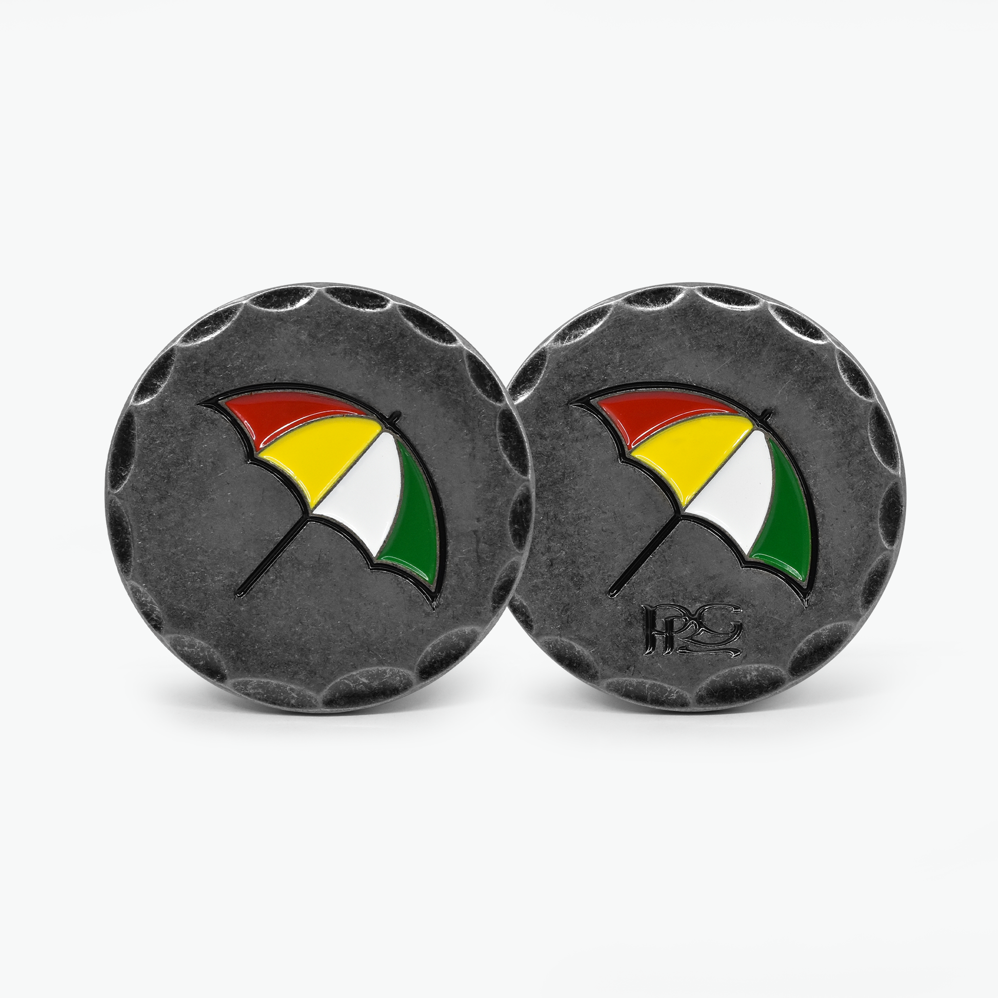 PRG Golf is excited to announce the launch of our new Arnold Palmer collections for 2025! This double-sided chiseled ball marker showcases the iconic Arnold Palmer umbrella in full color fill on an antique style marker with a chiseled edge making this modern take on a vintage classic truly one of a kind! Chiseled Marker comes pre-packaged in a custom green Arnold Palmer window box.