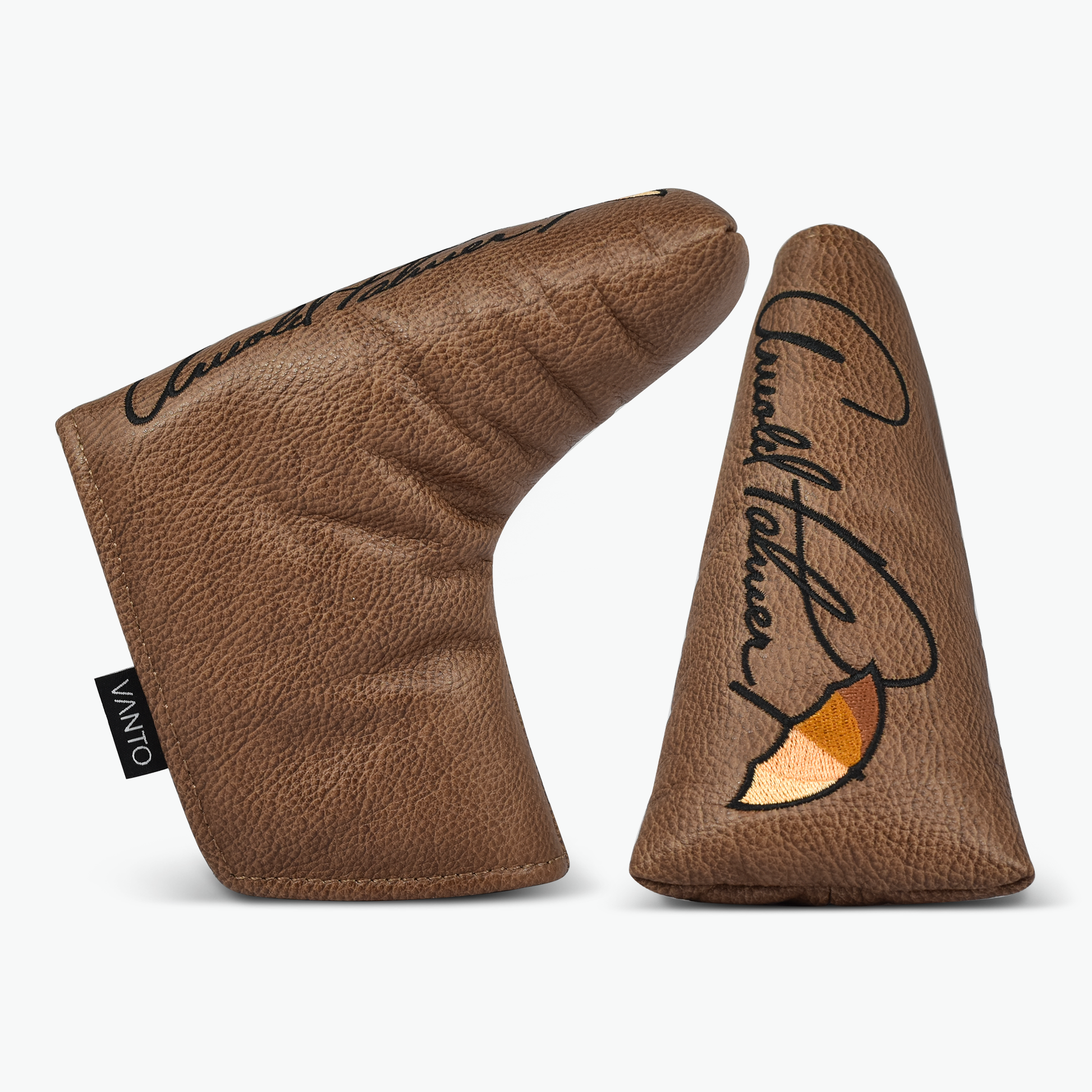 - Showcases the officially licensed Arnold Palmer umbrella signature in brown accents making this blade putter cover second to none!