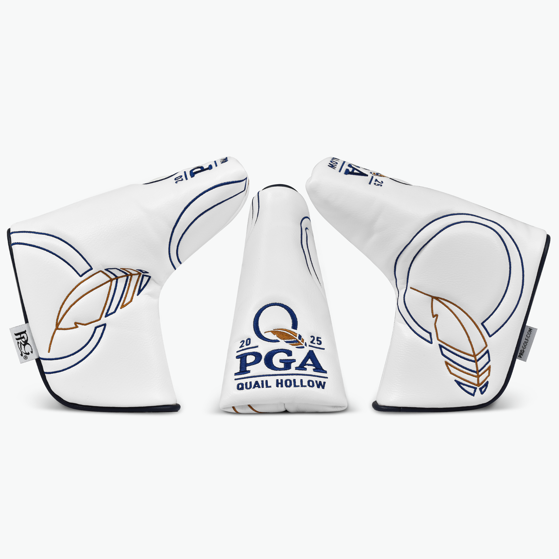 Our new elite blade putter covers are made with our high-quality elite material and showcases the official 2025 PGA Championship at Quail Hollow logo in full color embroidery. These blades also offer a unique aspect with the Quail Hollow Country Club logo in ghost stitching , for added style!