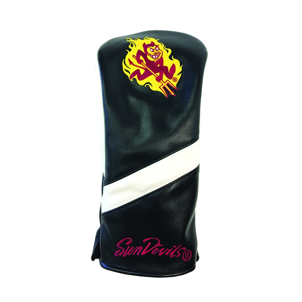 High-quality, soft-touch leatherette with a soft inside lining make these official Arizona State University "Sun Devil" golf head covers stand apart from the rest. Retro styling with a modern twist and they're made with water resistant material. Fits most 460cc drivers.