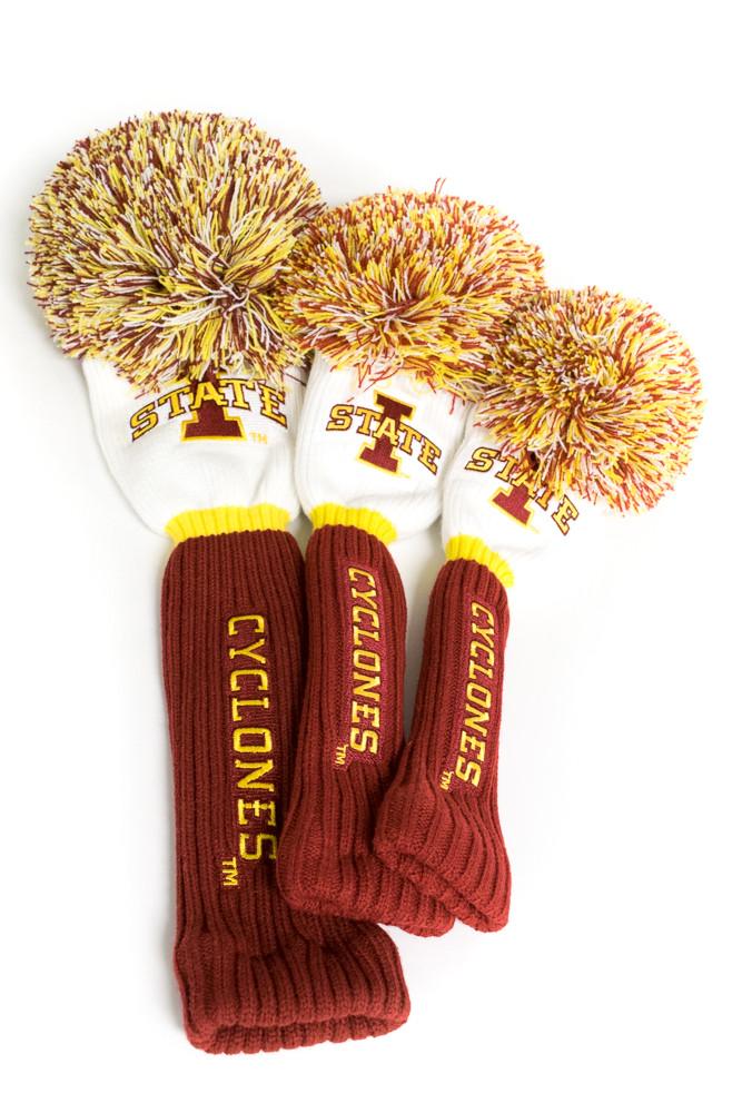 Show your school spirit and get your Iowa State pom wood covers. This knit pom design is made from our high-quality knit fabric, providing full protection for your clubs and maintaining product durability. It includes an elastic midsection and soft inner lining, helping these head covers slide on and off with ease, all while showing your school colors. Go Cyclones!